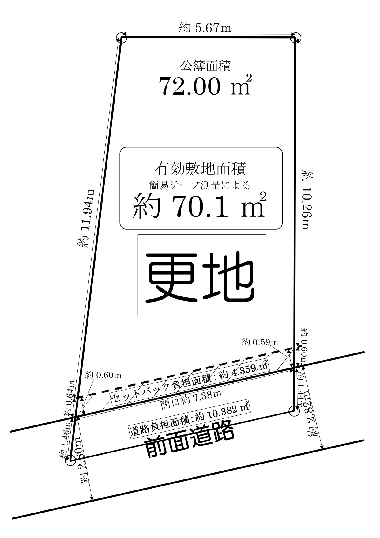 | 土地面積 | 有効敷地面積(セットバック後):約70.1㎡ |