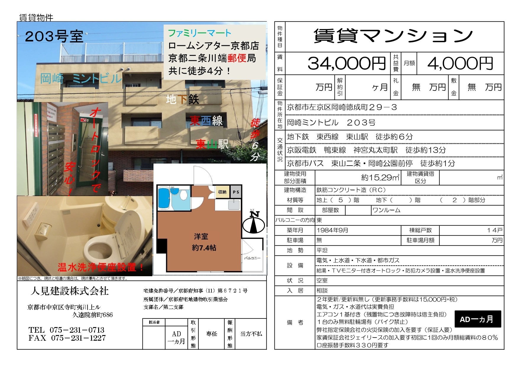 | 備考 | 更新時(更新事務手数料は15000円+税) 電気・ガス・水道代は実費負担 エアコン1基付き(残置物につき故障時は借主負担) |