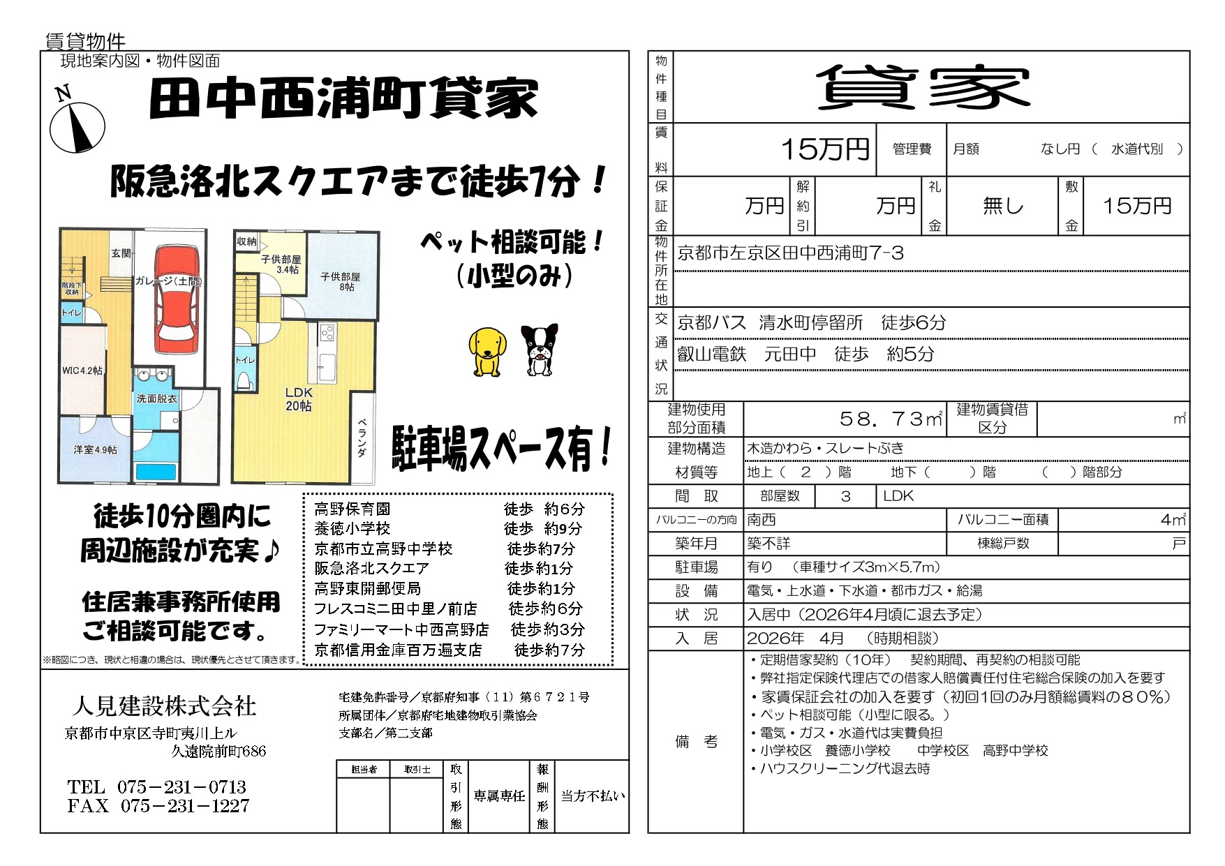 借りるペット相談可能です!(小型サイズ) 駐車場付き物件です♪