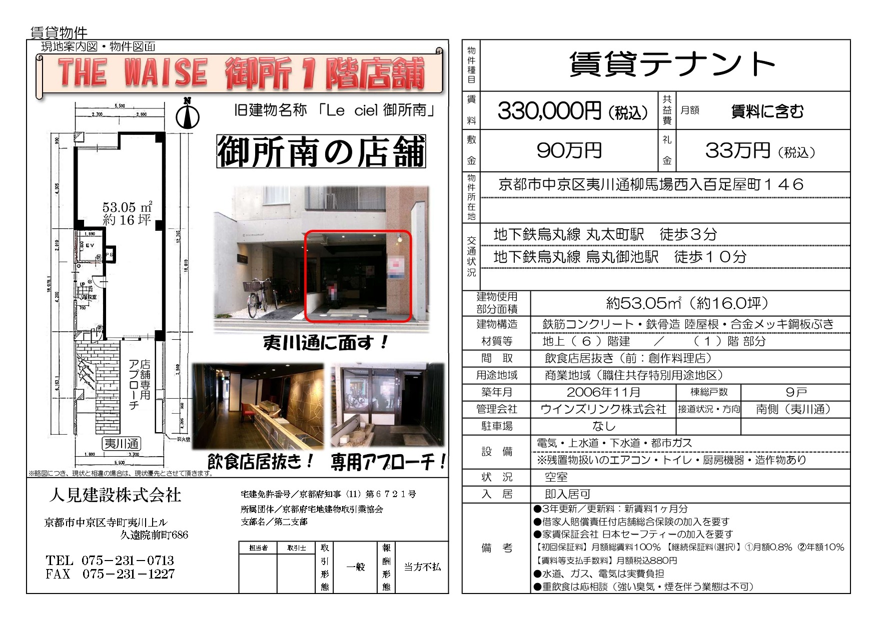 | 備考 | ・重飲食は応相談(強い臭気・煙を伴う業態は不可) ・残置物扱いのエアコン・トイレ・厨房機器・内装造作物あり(修理、取替等は借主様負担となります) ・水道、ガス、電気は実費負担 ・管理会社あり |
