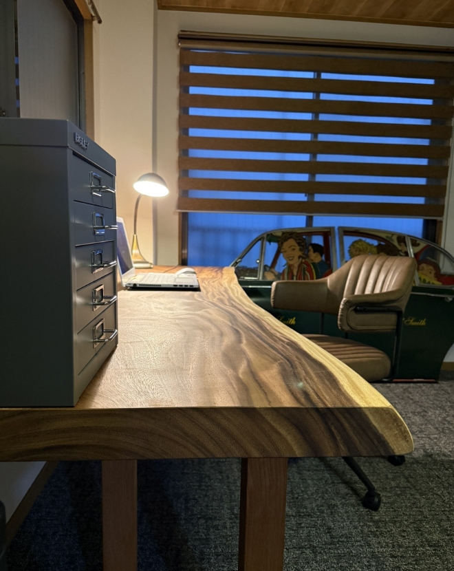 私たちは長年にわたり、木と向き合いながら住まいづくりや木工製作に取り組んできました。一本一本異なる表情を持つ銘木や無垢材の魅力を最大限に引き出すことを大切にし、素材選びから乾燥管理、加工、仕上げまで、すべての工程を丁寧に行っています。自然素材である木は、育った環境や樹齢によって性質が異なり、同じものは二つとして存在しません。私たちはその個性を見極めながら、それぞれの木が最も美しく活かされる形を考え、ものづくりに反映させています。時代が変わっても、「良いものを長く使っていただきたい」という想いは変わりません。銘木を通じて、お客様の暮らしに寄り添い、世代を超えて使い続けていただける一生ものの家具づくりを目指しています。
